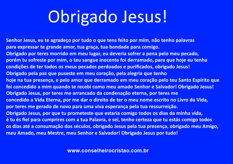 Obrigado Jesus, por teres me arrancado da condenação eterna, por teres me concedido a Vida Eterna.